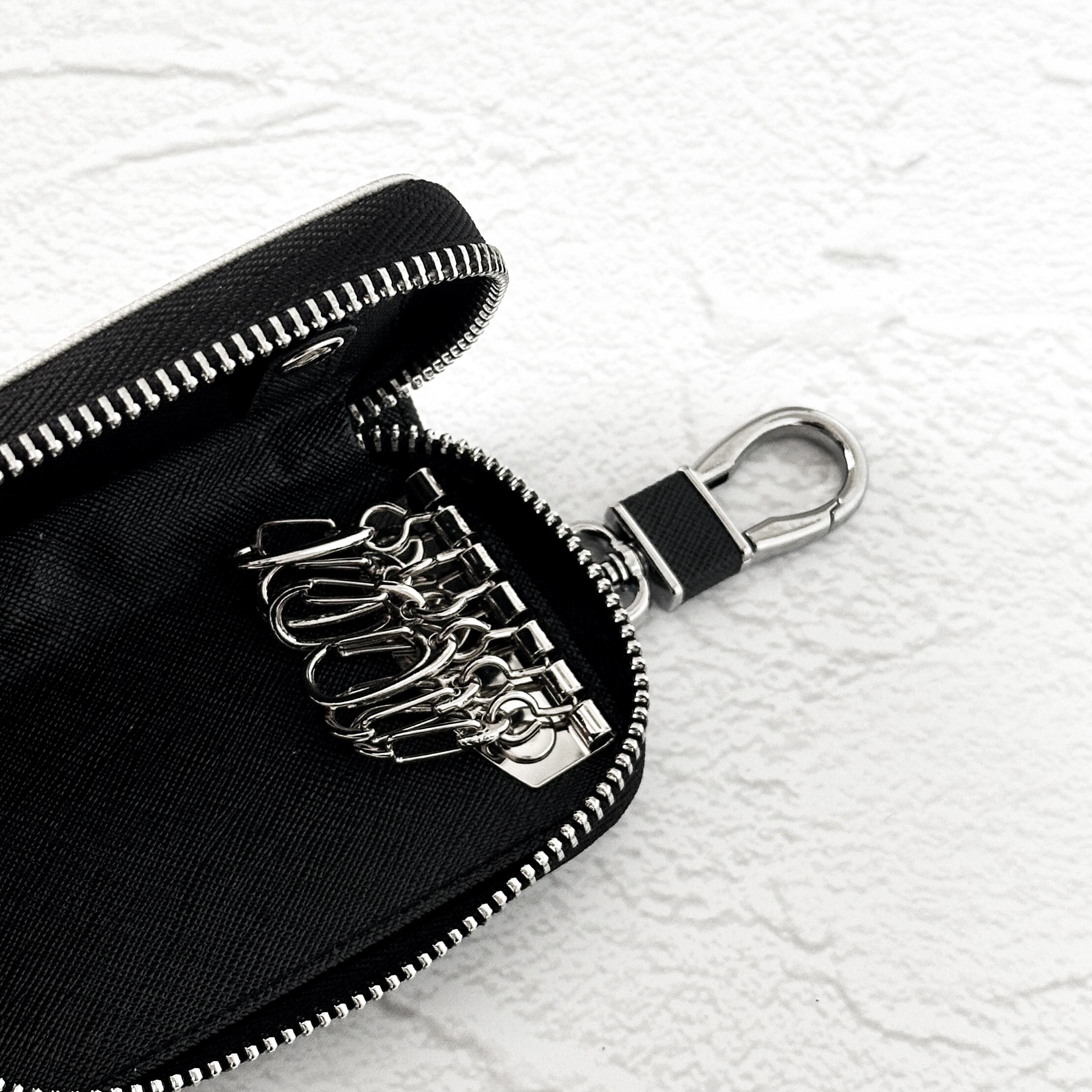 ケースには6連キーフックと着脱可能なスナップボタン付き。
